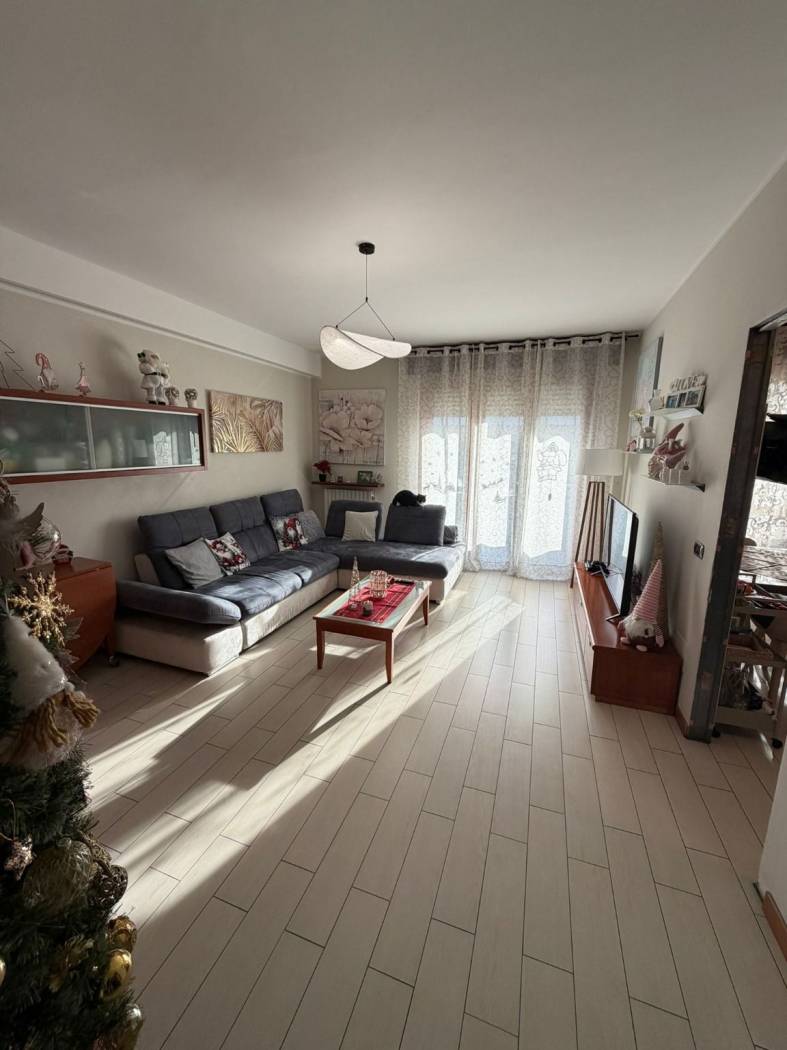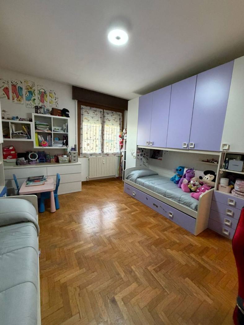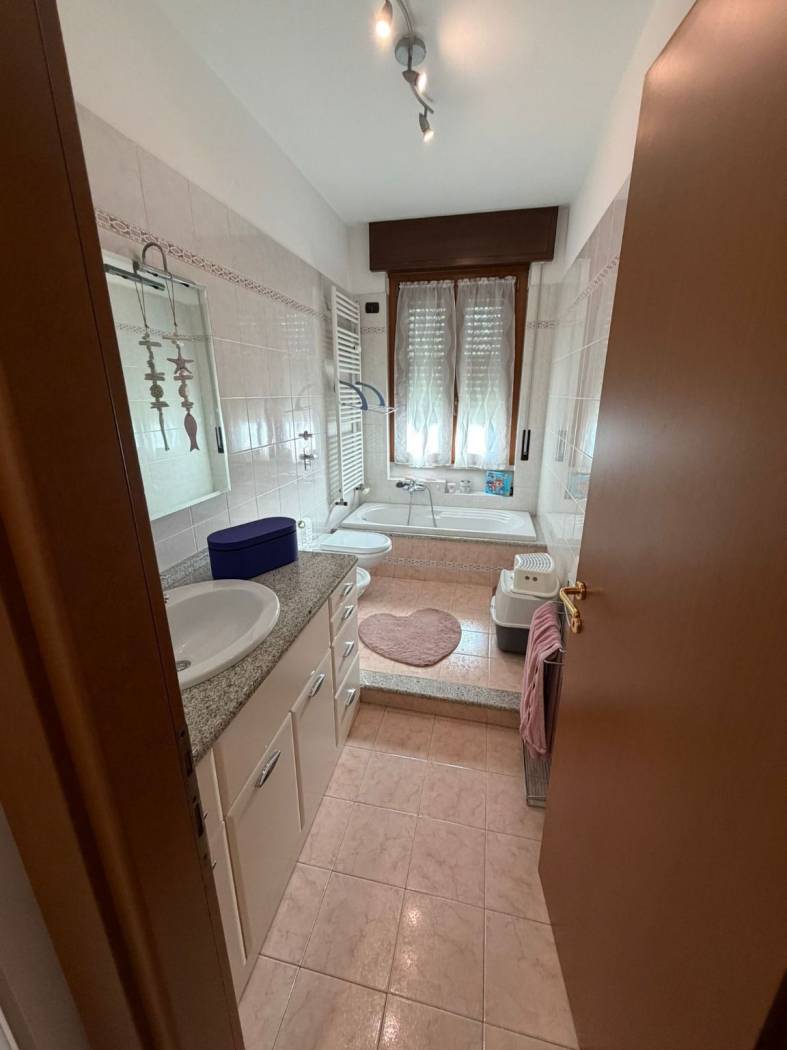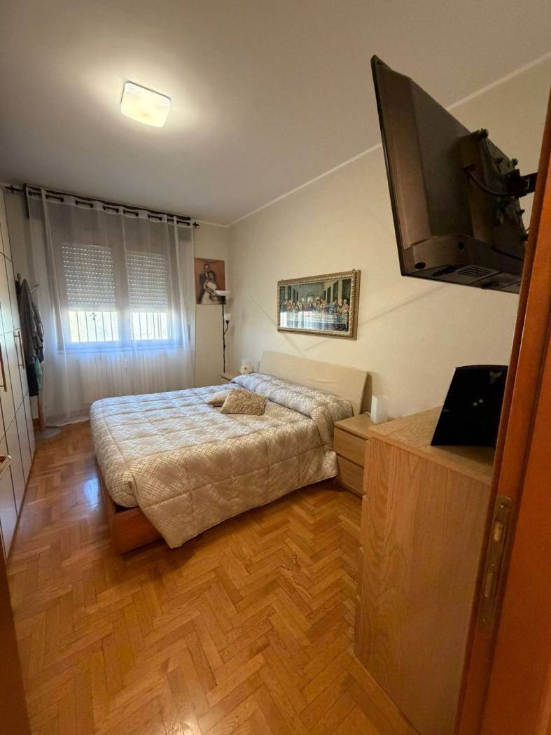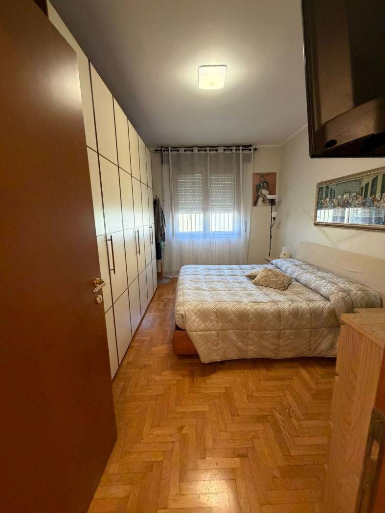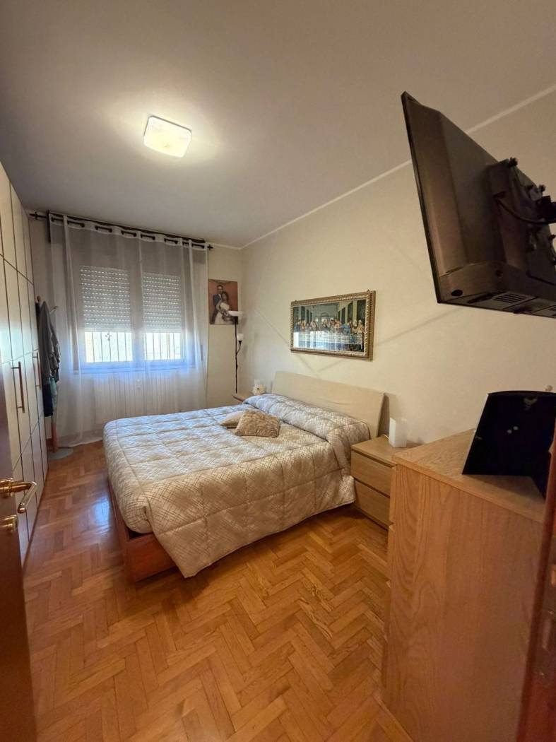 INGRESSO - SOGGIORNO - CUCINA ABITABILE- DUE CAMERE MATRIMONIALI - BAGNO DOPPIO CON DOCCIA E VASCA IN DUE AMBIENTI SEPARATI - RIPOSTIGLIO - AMPIO BALCONE - BOX E CANTINA.