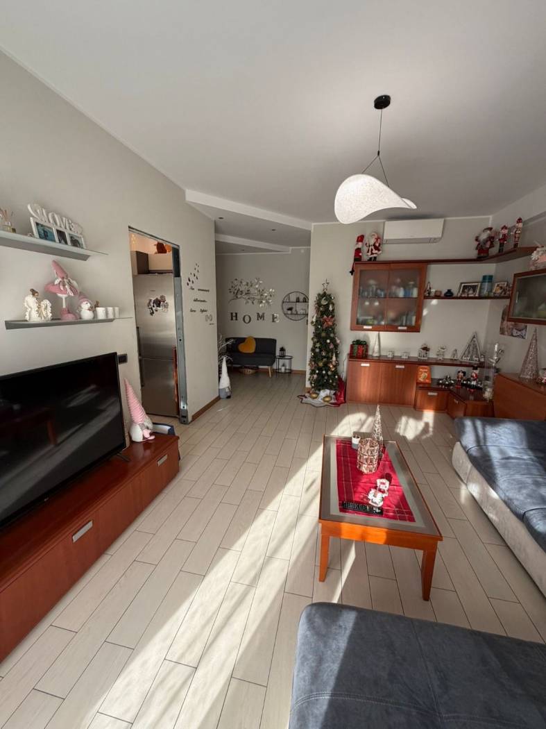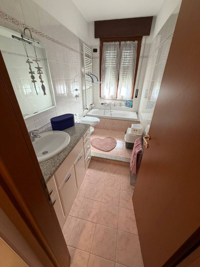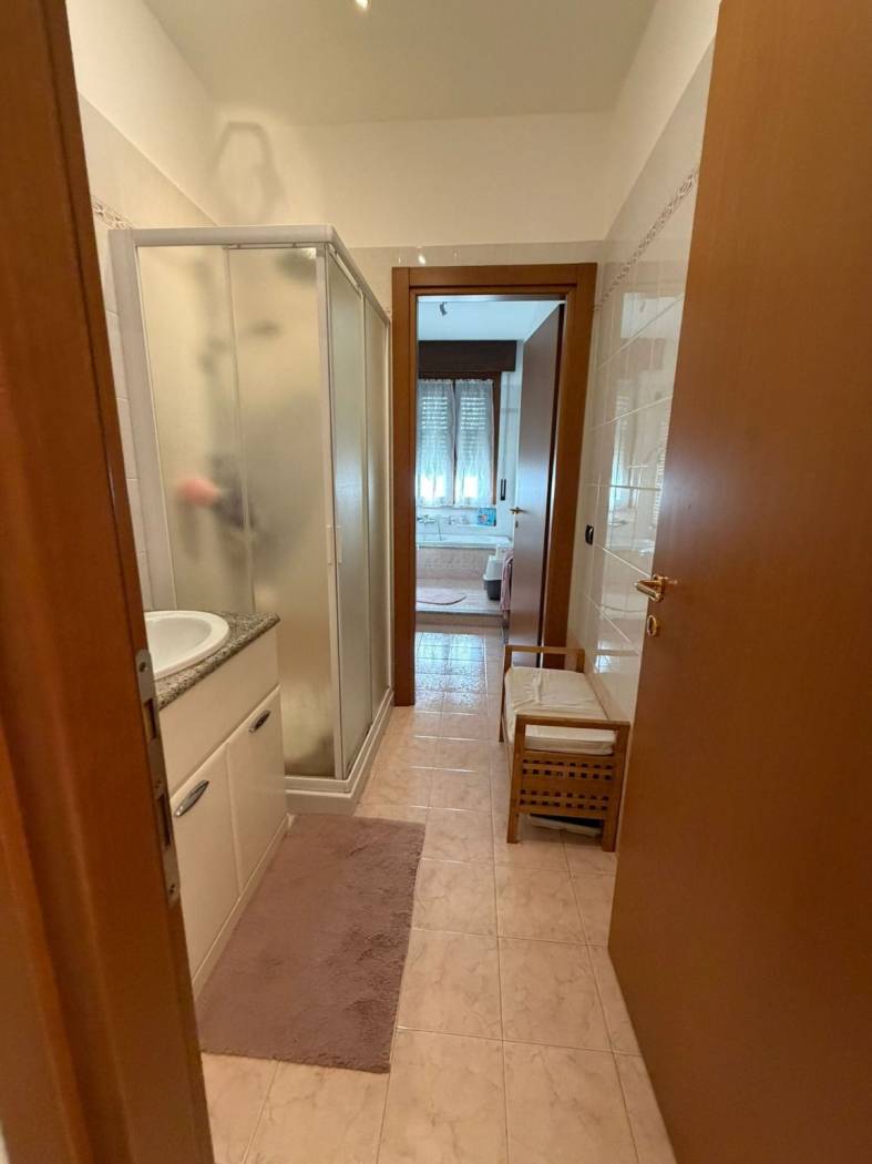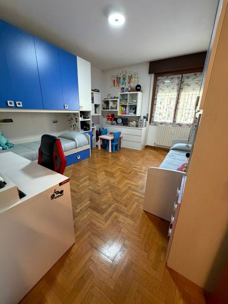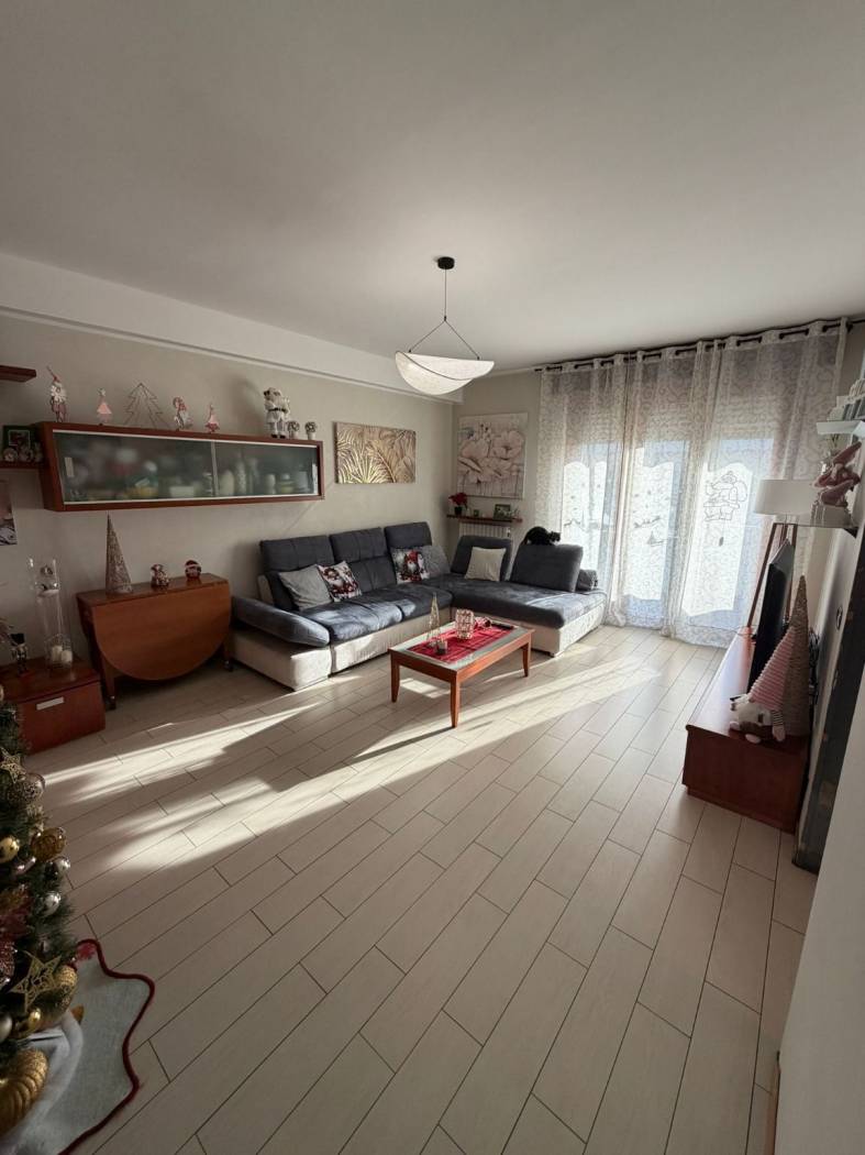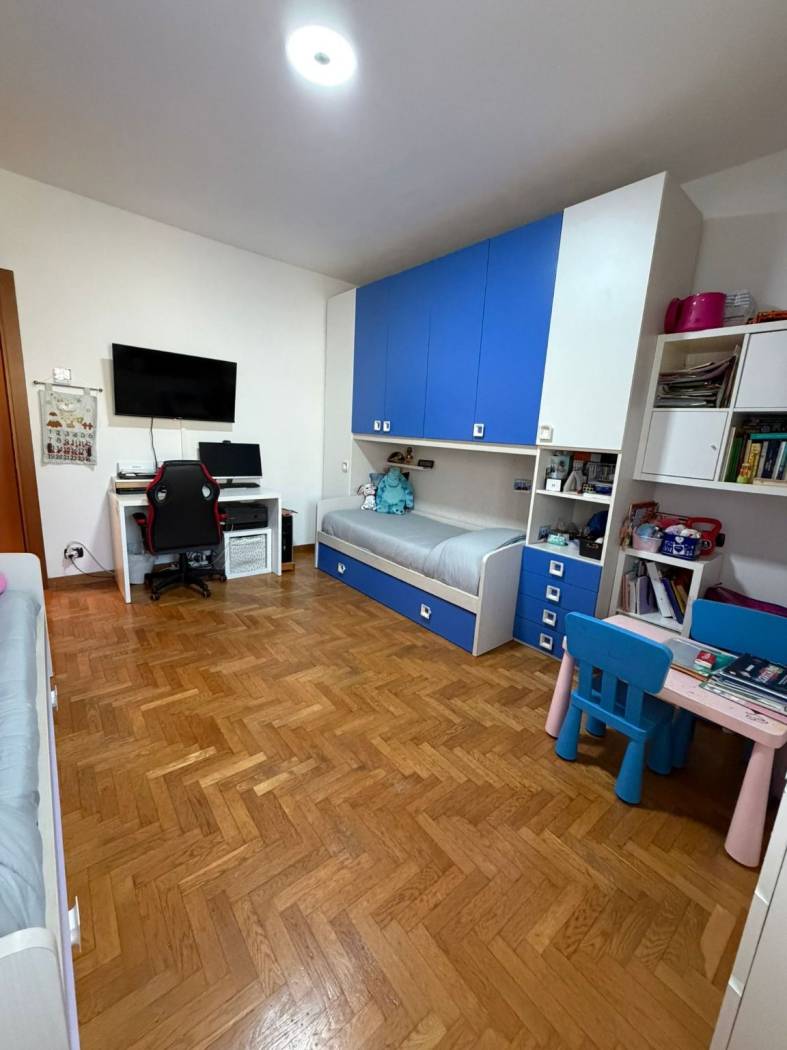 INGRESSO - SOGGIORNO - CUCINA ABITABILE- DUE CAMERE MATRIMONIALI - BAGNO DOPPIO CON DOCCIA E VASCA IN DUE AMBIENTI SEPARATI - RIPOSTIGLIO - AMPIO BALCONE - BOX E CANTINA.